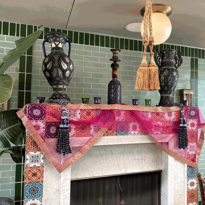 You would think that changing a marble fireplace would be a complex and expensive process, but nothing could be further from the truth. With large format printing and inspiration from the rich tradition of Moroccan tilery, we turned this modern fireplace into an inviting corner of an ancient fantasy.