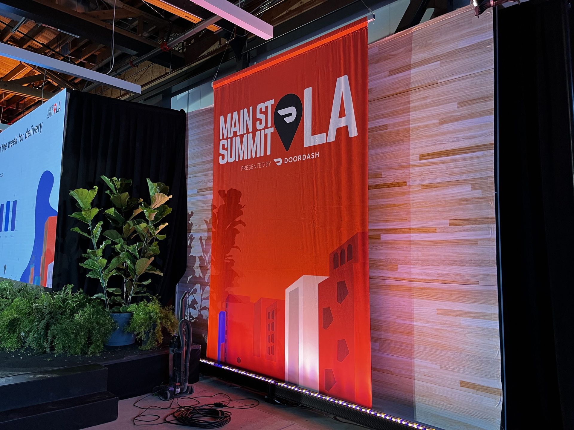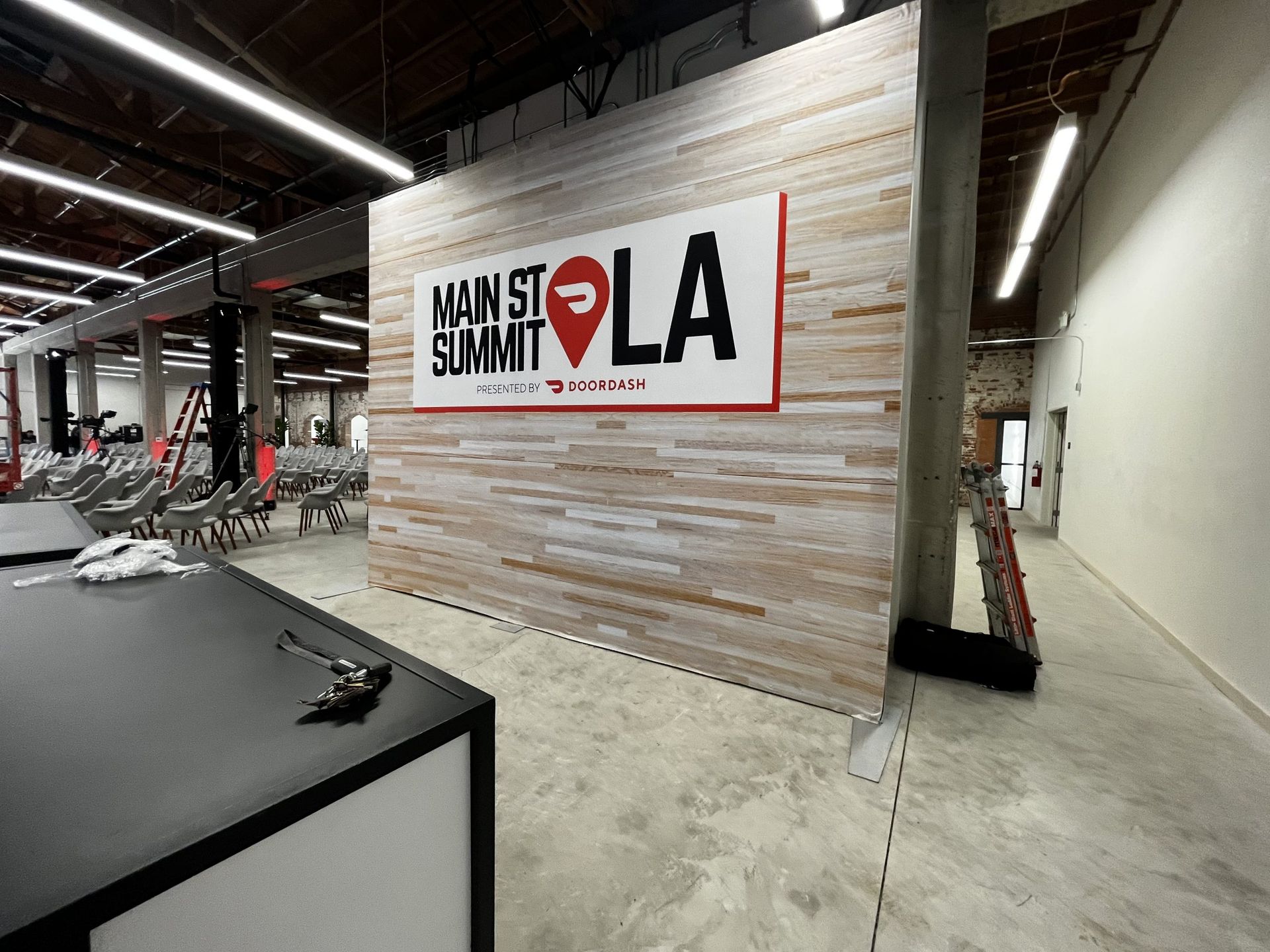 A banner backdrop, also known as a step and repeat banner, is a large format graphic where a logo or logos are repeated serially so that people can pose in front of them for photos at galas or other similar red carpet events.