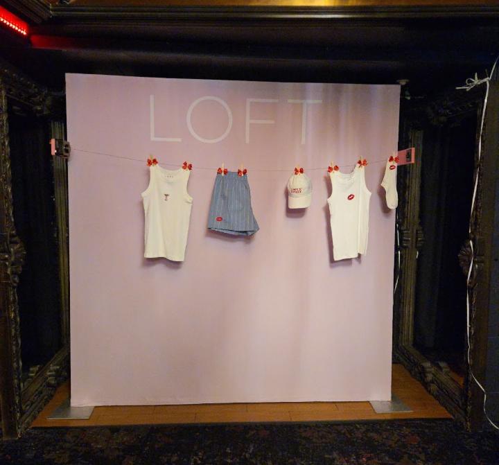 One example that shows this well is a fabric backdrop built for LOFT at a recent event. The setup was simple on purpose: a soft pink printed fabric wall with the LOFT name barely visible behind a clothesline of apparel. Nothing loud, nothing trying to steal the spotlight. The clothing added a small three-dimensional element, but the print carried the scene. People stepped in, snapped a photo, and the brand came through naturally. It was a gentle moment in a space that didn’t need to shout.